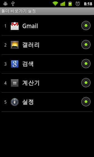 2. 폴더가 어플리케이션 타입일 경우, '바로가기 설정'을 통해 어플리케이션을 등록합니다.