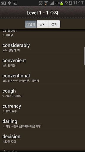 스마트폰을 킬때마다 한번씩 단어를 학습하세요! 암기에 많은 도움이 될것입니다.
