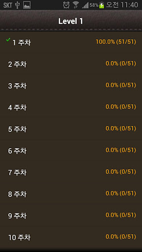 전체 단어 중 몇 %의 단어를 학습했는지 확인할 수 있습니다.