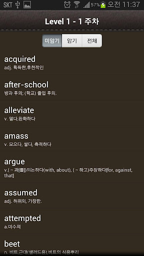 스마트폰을 킬때마다 한번씩 단어를 학습하세요! 암기에 많은 도움이 될것입니다.