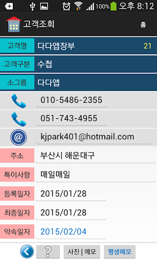 고객관리 시스템에서 [평생메모] 기능으로 상대개인별로 평생메모를 작성 저장 관리합니다.