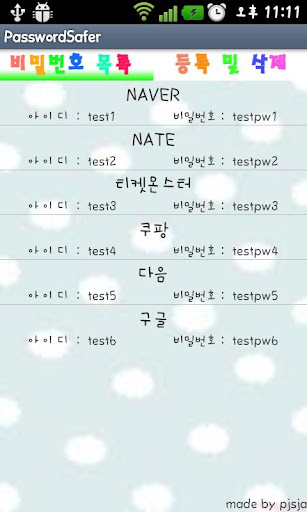 '비밀번호관리'는 각종 사이트의 아이디와 비밀번호를 저장 할 수 있습니다. 여러 사이트의 각각 다른 비밀번호를 '비밀번호관리' 하나로 쉽게 관리할 수 있습니다. (광고 없음)
