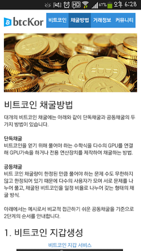 비트 코인에 대한 환률, 채굴방법등 많은 정보와 내용을 담은 어플 입니다.