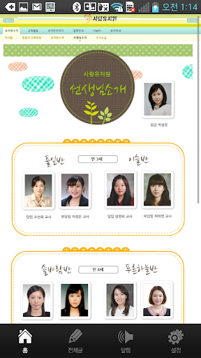 이슬반/풀잎반 /솔바람반 /푸른하늘반 /맑은샘물반 /산새소리반