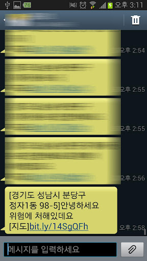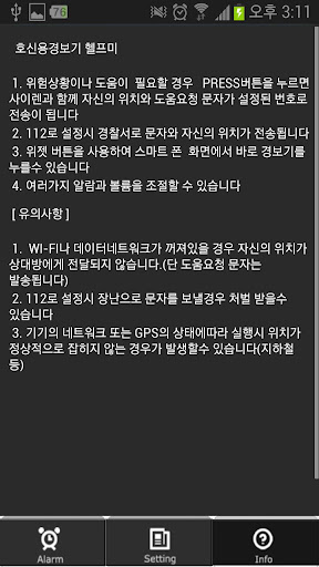 - 112로 설정시 경찰서로 문자와 자신의 위치가 전송됩니다.
