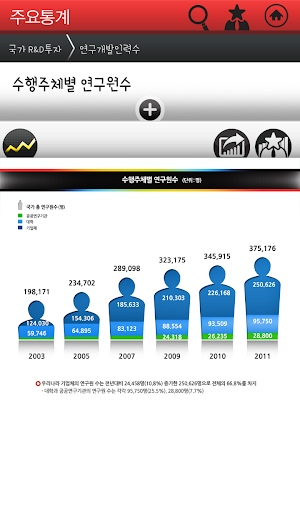 산업통상자원부와 한국산업기술진흥원에서는 산업기술 R&D통계 Application을 통해 우리나라 산업기술R&D 통계자료를 시계열자료로 제공하고 있습니다.