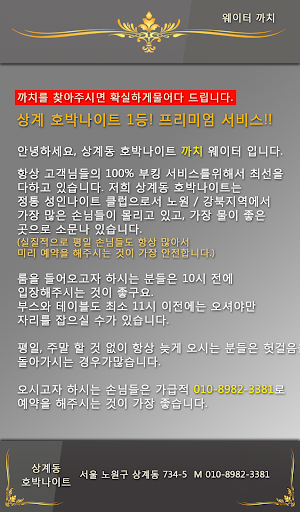 안녕하세요. 상계동 호박나이트 까치 웨이터입니다.