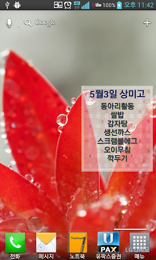 ※ 2014학년도 시간표와 12월 식단표가 있어 위젯을 통해 식단을 알 수 있습니다.
