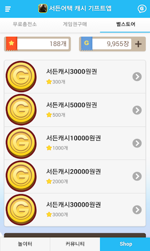 또한 열심히 모은 별로 다른 카카오게임 캐시아이템/문상/틴캐시으로도 교환가능하세요!
