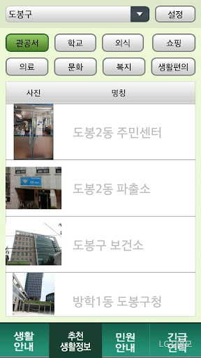 2. 정보 제공 기능 (현행 버전은 서울시 중구, 동대문구, 도봉구 정보에 한정되며, 지속적으로 추가될 예정입니다.)