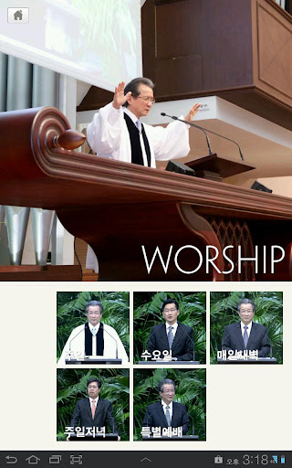 - WORSHIP: 주일, 삼일, 새벽, 주일저녁 등의 설교 말씀을 보고 들으실 수 있습니다.