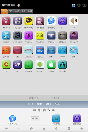 자바, 오라클, 네트워크, 정보보안, 닷넷, 안드로이드, 아이폰어플개발, 리눅스, 솔라리스, AIX, C언어, 전문교육을 하고 있으며, 국비지원 계좌제과정이나 직장인 80%~100%환급 및 단체 출강전문 교육원입니다.
