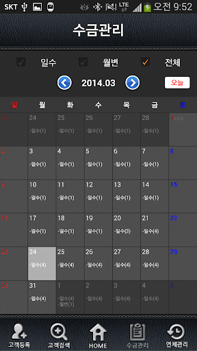 -수금관리 : 간편한 수납 처리와 월별 수금 스케쥴이 일정표 형식으로 제공됩니다.