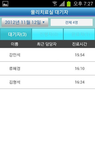 2)치료대기자를 선택하여 물리치료를 진행 할 수 있습니다.