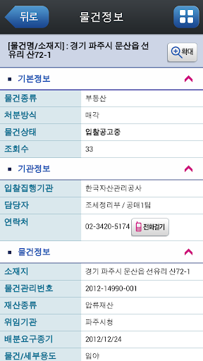 1. 물건검색 : 이용기관별이나 캠코의 물건 검색 및 상세정보