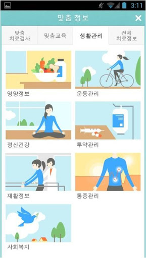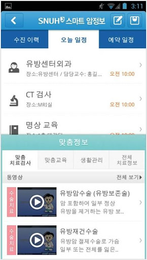 서울대학교병원 스마트 암정보는 환자 개인의 진료일정에 따라 맞춤형 암정보를 제공하고 질병관리에 도움을 드리기 위해 개발된 애플리케이션입니다.