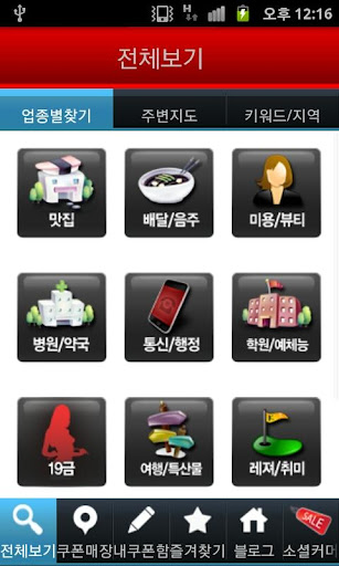 1. 전체보기 : 업종별찾기/지도보기/키워드검색/이벤트홈으로 나눠져 있고 이벤트홈은 인기 브랜드 또는 이벤트 쿠폰업체 / 공지사항