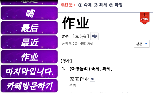 인터넷 중한사전을 활용한 앱으로, 와이파이 존에서 사용하실 것을 권장합니다.