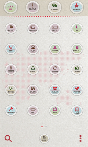 - 홈화면을 위로 쓸어올리는 제스쳐로 런처메뉴를 꺼내, [테마] 메뉴 선택, 원하는 테마를 선택하여 적용