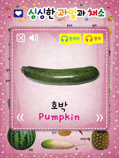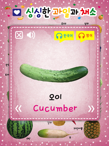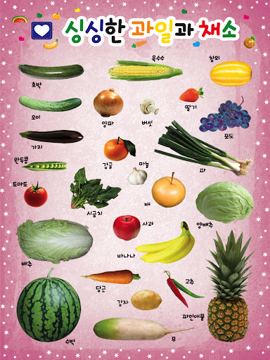 "싱싱한 과일과 채소" 편에서는 26종의 다양한 과일과 채소을 소개하고,