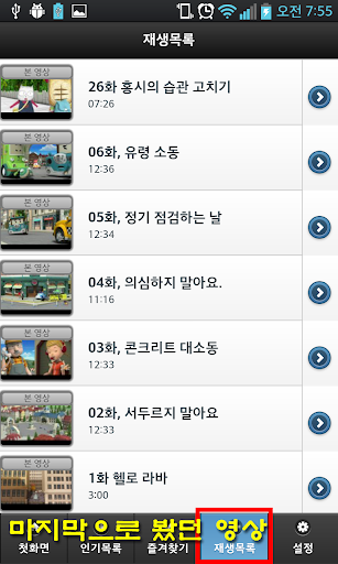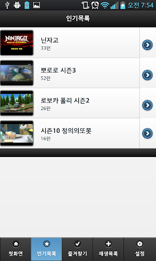 - 인기목록 : 인기있는 동영상 목록을 볼 수 있습니다.
