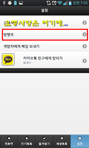 - 설정 : 건의사항, 요청사항, 요청목록을 방명록이나 메일로 보내주시면