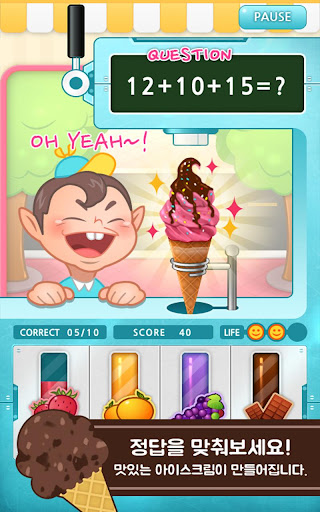 ▷ 재미 없는 수학문제를 아이스크림 만들기 게임에 접목하여 부담없이 즐길 수 있는 수학 교육용 게임입니다.