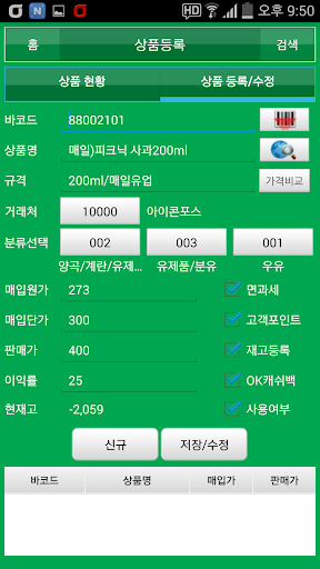 아이콘포스 프로그램을 사용하는 가맹점은 상품, 매입, 재고, 발주, 행사 정보를 실시간으로 등록 관리 할 수 있습니다.