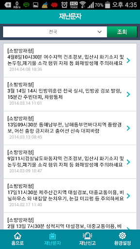 ○ 재난발생정보, 기상특보 등 재난문자 수신