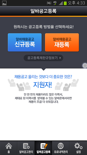 - 알바구인공고를 스마트폰에서 등록하실 수 있습니다! 신규등록에서 재등록까지 공고등록이 더 편해집니다.