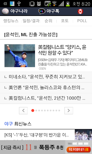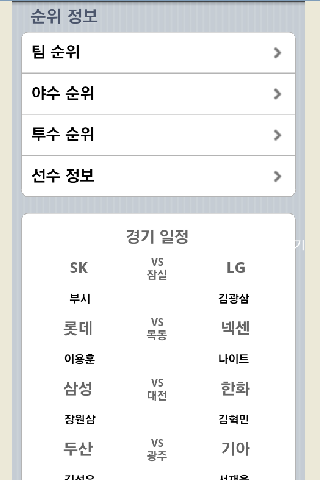 각종 야구관련 정보 제공(스코어,랭킹,시합일정)합니다.