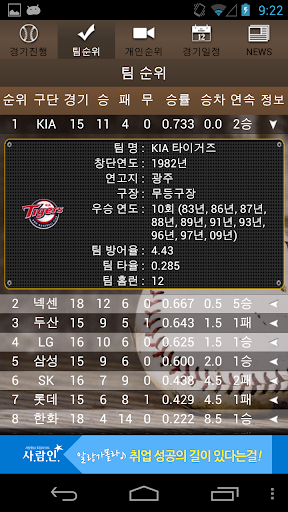 免費玩야구위젯 - 2015 한국 프로야구 문자중계 - App
