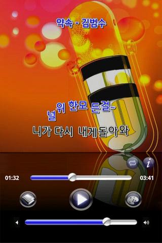 이용자의 취향에 맞게 가사 크기와 색상을 자유롭게 변경할 수 있으며 화면을 터치할때마다 전체 가사 보기, 가사 감추기 등 다양한 가사모드로 변경이 됩니다.