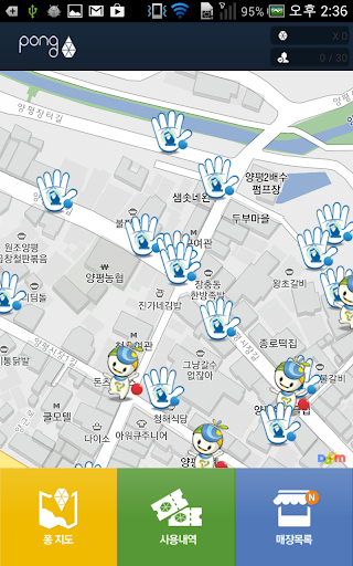 손바닥 모양의 쿠폰발급 태그의 위치는, 앱 설치 후 지도(퐁레이더)에서 확인하실 수 있고