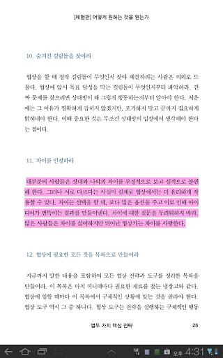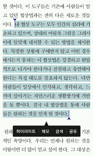 이러한 그의 협상 기본 원칙은 정에 흔들리고 쉽게 감정의 기복이 드러나는 한국 정서에 더할 나위 없이 꼭 맞는다. 상대의 기분이 상해버리면 어떤 논리나 전술도 통하지 않는다는 저자의 주장은, 이성과 감정 사이에서 자가당착에 빠진 대한민국의 직장인들에게 일과 생활에서 막힌 문제를 뚫어주는 속 시원한 해결책이 된다.