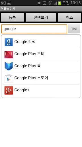 2) 어플스위치를 실행하여 어플들을 등록한 후에 "시작" 버튼을 누르면 서비스가 시작됩니다.