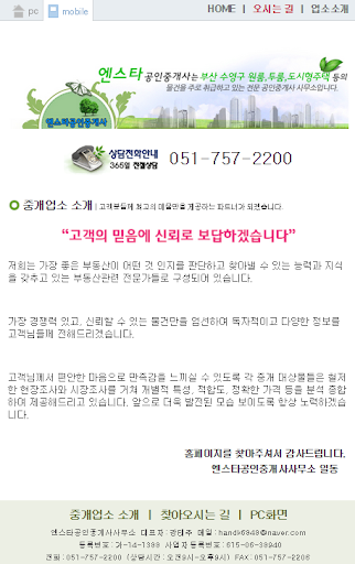 고객님께서 편안한 마음으로 만족감을 느끼실 수 있도록 각 중개 대상물들은 철저한 현장조사와 시장조사를 거쳐 개별적 특성, 적합도, 정확한 가격 등을 분석 종합하여 제공해드리고 있습니다. 앞으로 더욱 발전된 모습 보이도록 항상 노력하겠습니다.