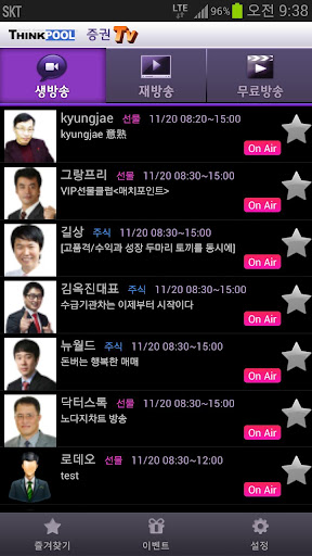 ▪ 씽크풀의 주요전문가 40명 (주식/선물)의 라이브 방송
