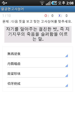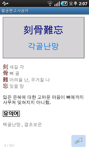 공무원 시험에 빈출되는 고사성어를 모아 만들어진 어플리케이션입니다.