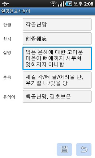 3. 수정 ( 고사성어의 설명 유의어를 수정 할 수 있다.)