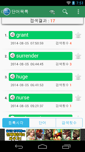 사전을 읽다가 원터치한 모든 단어는 관심단어로 등록할 수 있고 관리되어 집니다.