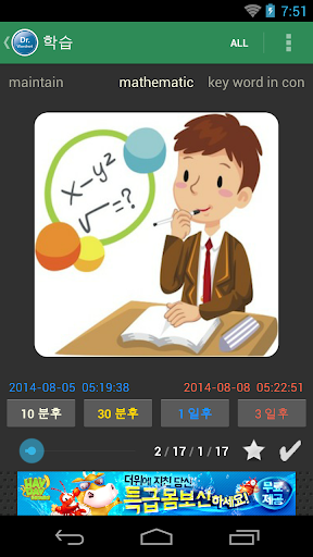 쉬운단어는 3일 후로 어려운 단어는 10분 또는 30분 뒤로 해서 계속 복습하면 되겠습니다.