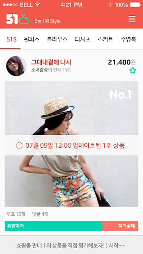 - 쇼핑몰에서 실제로 판매된 1위 상품만을 보여주는 유일한 쇼핑앱!