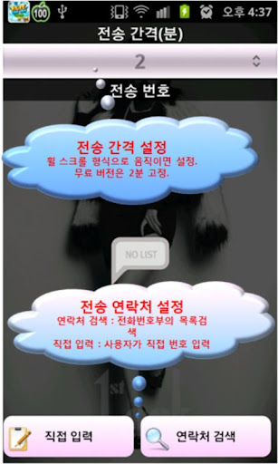 + 하단의 톱니바튀 버튼(설정)으로 화면 이동 하여 전송목록, 전송 간격 설정
