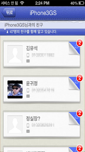 - 친구, 동료, 새로운 만남에 서로의 연락처 공유와 관계도를 알려줍니다.