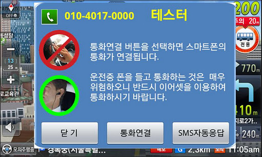 운전중에 스마트폰으로 걸려오는 전화나 SMS문자 내용을 아이나비의 큰화면에 읽기 쉽게 표시하고 SMS문자내용확인, 자동응답SMS보내기,통화하기,SMS문자를 보낸 상대방에게 전화걸기 등의 조작을 원터치로 할수 있도록 함으로서