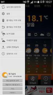 최대 다섯군데 까지의 즐겨 찾는 지역을 저장하여 현재 날씨, 3시간별 예보, 주간예보 그리고 미세먼지 오염도를 확인할 수 있습니다. 또 전국 날씨와 위성사진 그리고 레이더 영상으로 국내 기상 변화를 간편하게 관측할 수 있습니다.