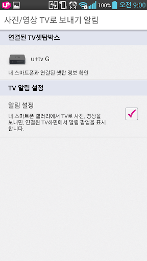 4) 스마트폰으로 찍은 사진/영상을 U+tv G 셋탑으로 보낼 수 있는 사진/영상 알리미 기능