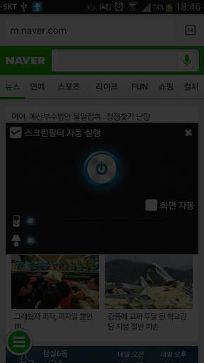 - 온 일경우 스크린필터 백그라운드로 계속 실행!