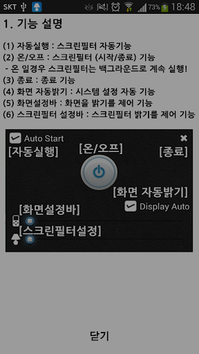 (6) 스크린필터 설정바 : 스크린필터 밝기를 제어 기능